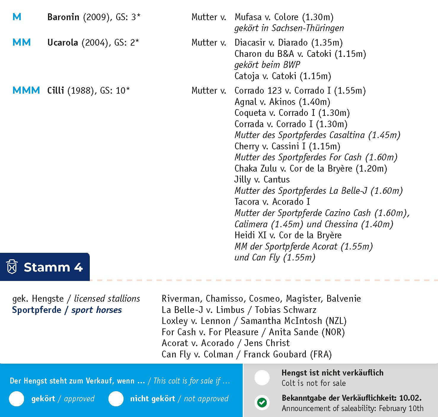 | Von Holstein | Vagabond de la Pomme SBS | Vigo d'Arsouilles BWP |