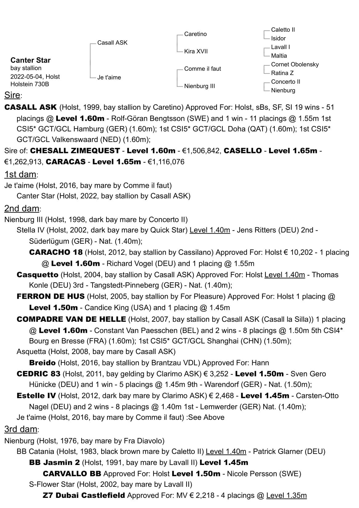| Casall | Caretino | Caletto II |
