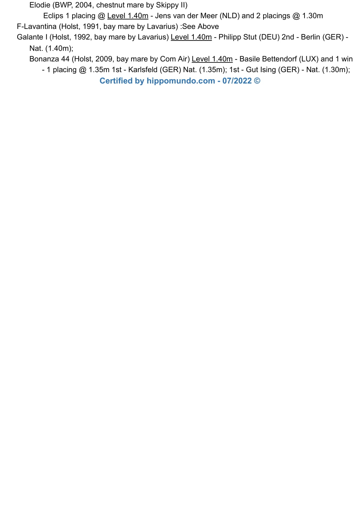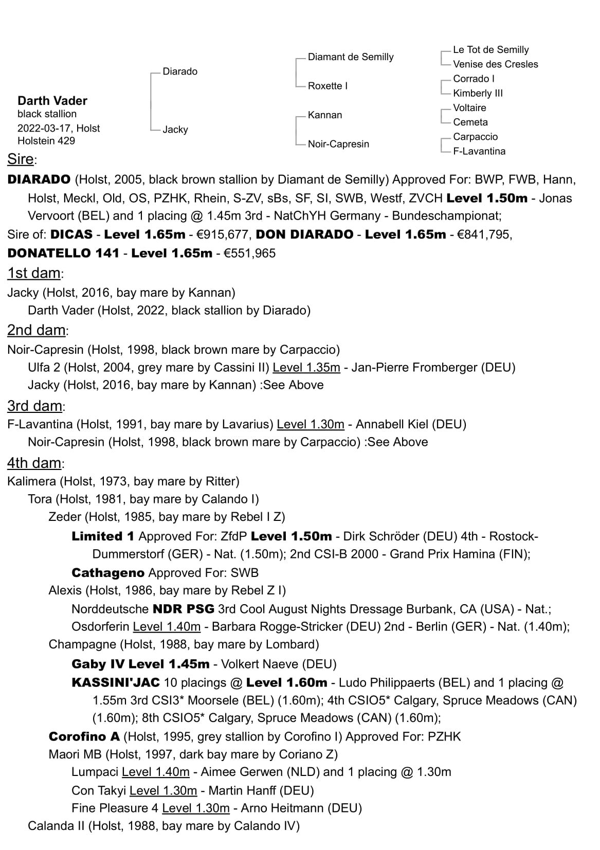 | Jacky | Kannan KWPN | Voltaire HAN |