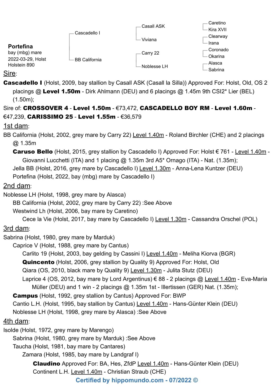 | Cascadello I | Casall | Caretino |