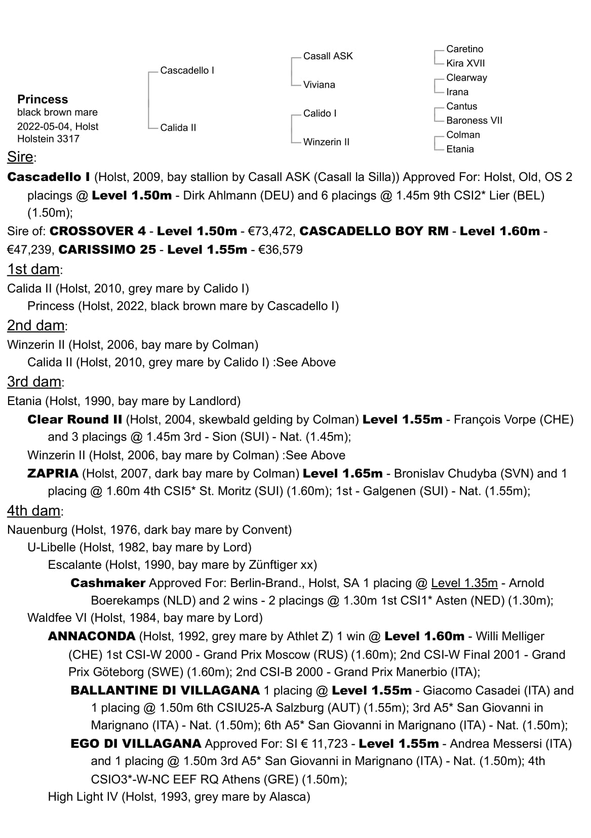 | Cascadello I | Casall | Caretino |