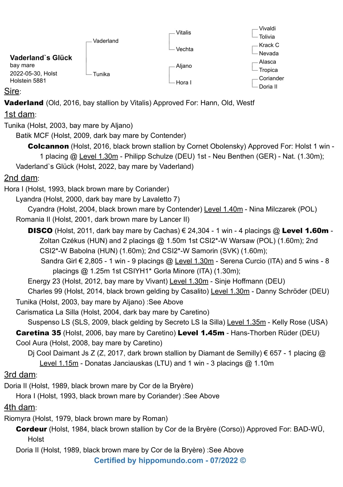 | Vaderland OLD | Vitalis KWPN | Vivaldi KWPN |